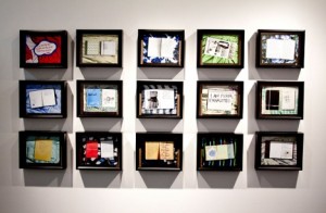 “Memoir” is a collection of Sharpe’s personal journal entries from the past 15 years. Fifteen mixed media box installations house her journals. Her honesty in these entries is unabashed and real, as Sharpe allows us into incredibly personal moments, such as harsh judgments she’s made on herself and broken-hearted poetry.