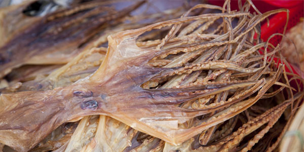 Drying and flattening seafood is a common tradition found for preservation throughout Asia. Seahorse, snails, scallops, shrimp, octopus, cuttlefish and squid are the most common. Salt is heavily applied for curing before the drying process.