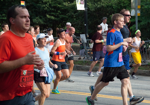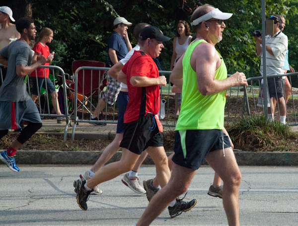 Last Wednesday 60,000 runners and walkers flooded Peachtree Street under clear skies in the world’s largest 10K event. Many showed their patriotism by doing everything from carrying American flags the entire time to running in red, white and blue costumes (one such runner wore a Captain America costume, complete with a shield strapped to his arm).