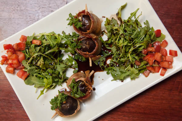 Warming up at Corner Tavern this fall means more than just stealing away from the chill—it means firing up your taste buds with a cup of the jalapeño-packed turkey chili. Tomato-based with chunks of onion, garlic and ground turkey, this savory starter is not joking around with the spice. A cup or bowl of turkey chili is garnished with buttered and toasted hoagie rolls. Specialties like fried artichoke hearts and bacon wrapped figs distinguish Corner Tavern a sophisticated spot to masticate. The figs are steamed, stuffed with goat cheese and wrapped in prosciutto. Reduced balsamic seals in sweetness while arugula and diced tomatoes compliment this rich dish.
