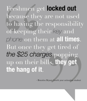 “The obvious thing is for residents to make sure they have their key with them,” said Brandon Bryant, fourth-year animation student and second-year Spring House RA. “Instead of calling the RA when locked out, residents should call their roommates because, often times, roommates are still in the room.”
