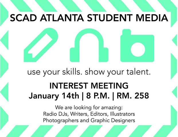 Sick of not seeing your work or your major represented in SCAN Magazine and The Connector? Stop by room 258 tonight at 8 p.m. to meet the editors and pitch your own ideas! Come say, “Hey”, and learn how to get published and paid for your work. Can’t attend? Bring some friends and hang out at our editorial meeting Friday at 11 a.m. inside the Spring House Computer Lab or email Editor-in-Chief, Erin White, at editor@scadconnector.com.