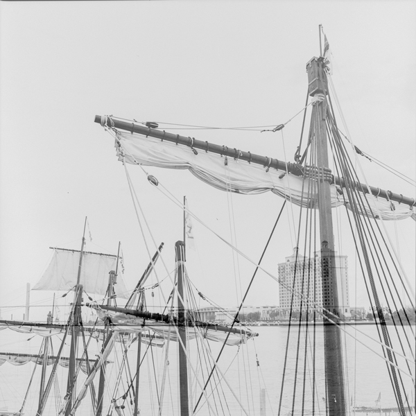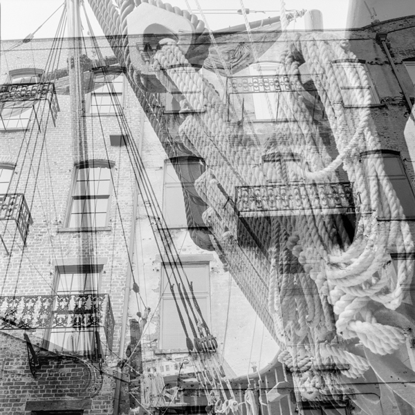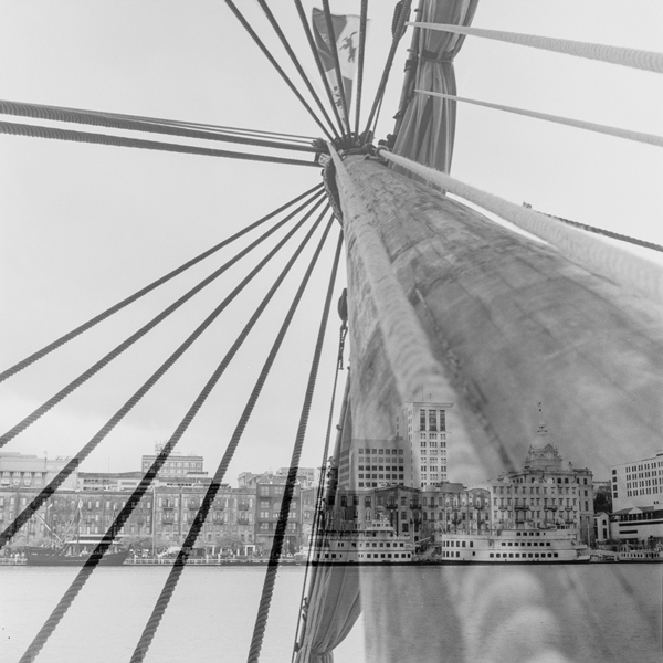 “Plus Ultra,” which translates to “Further Beyond,” is the leitmotiv of this series of double exposures. Temporal matters like the former enmity between the British and the Spanish Crowns vanish when we look further beyond. The caravels aboard which Columbus first claimed the “West Indies” for their Catholic Majesties, Fernando and Isabel, were now peacefully receiving harbor at what was once the capital of Great Britain’s southernmost colonial border. Spanish and British cultural signifiers thus intermingled with the American South for a few weeks. Their presence attested to the temporality of human interests like war and politics, vis-à-vis humankind’s transcending values and the persistent blend of race, culture and language that we are.