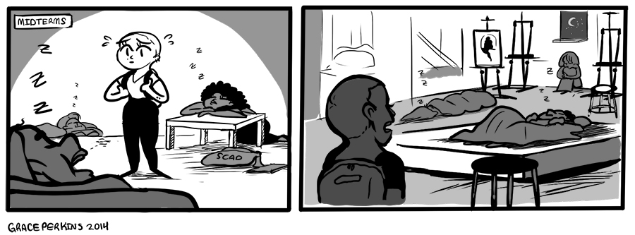 ComicsMultimediaMidterm Sleepers by : Jamel Jones 12 years ago share by Grace Perkins, contributor Tags : midtermson-campusSCAD Atlantasleeping studentswalking sleepers previous article Five quirky date ideas next article The upside of pornography you might also like Thrift On The Hunt Series Pt1. 1 month ago Bindery: A New Approach to Publishing 1 month ago Andre Leon Talley Exhibit 2 months ago