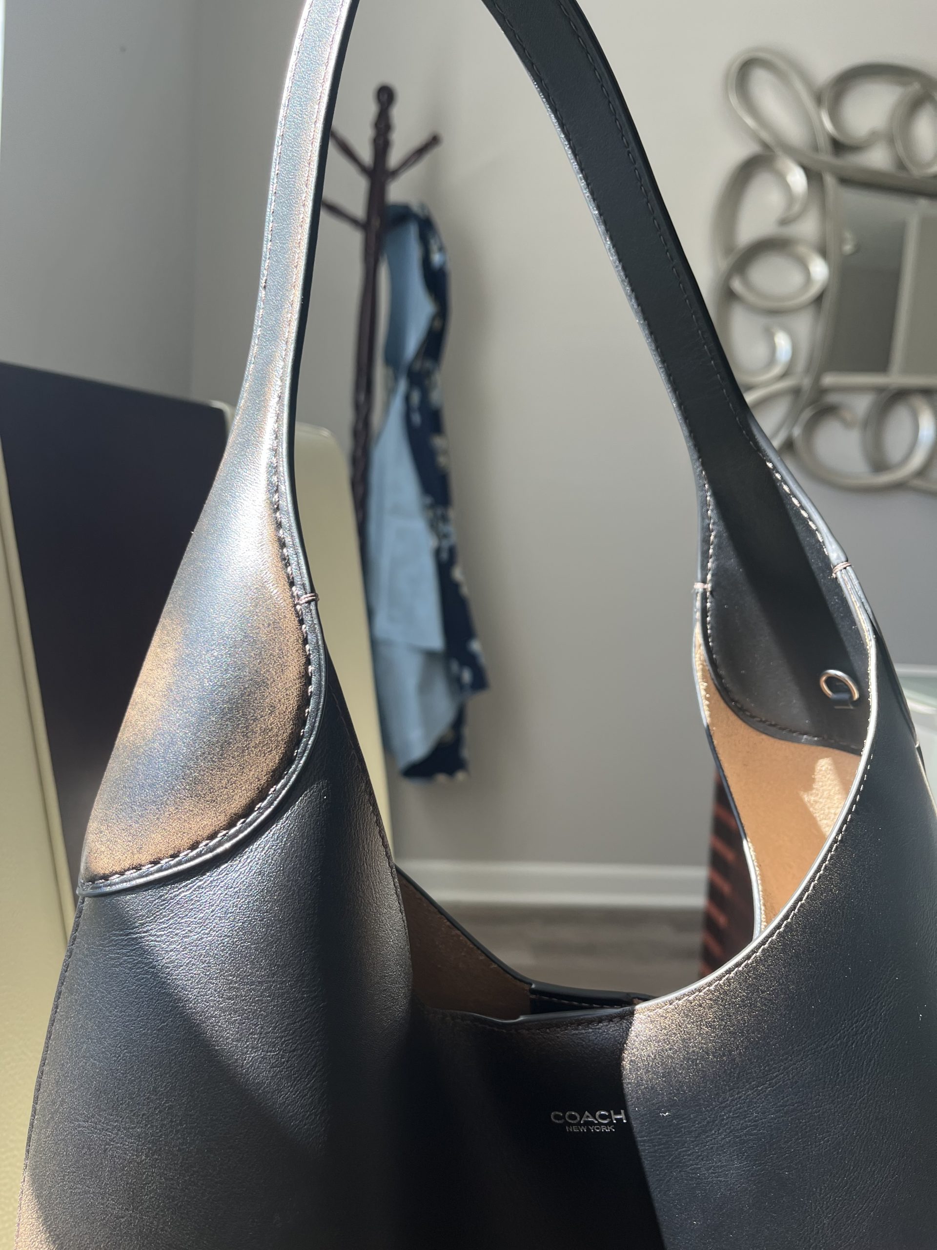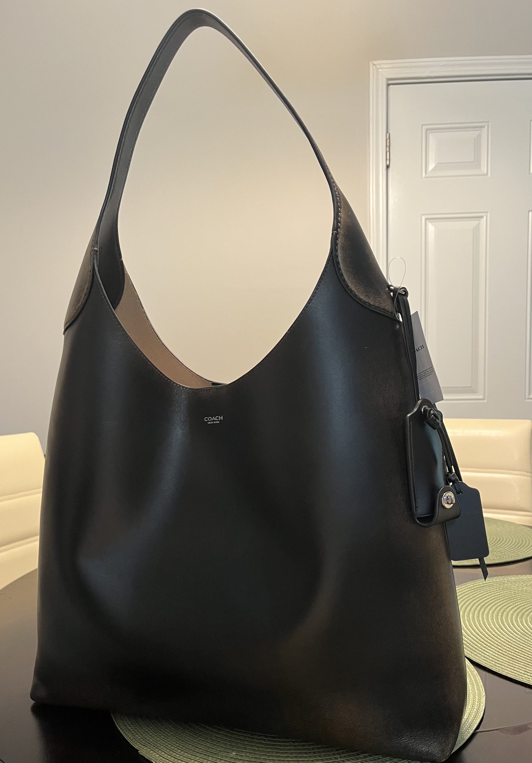 I have been eyeing this bag for a while! My TikTok feed is responsible for putting me onto this bag. I love the elegant look of this bag, especially that it’s made of genuine leather. The Brooklyn Shoulder Bag is available in two sizes: 28, which is small, and 30, which is oversized. I mainly wear smaller bags, so I had to get the oversized one. This bag is so elevated that I can picture wearing it to work or to spruce up a very casual basic outfit. Although I like the idea of putting my laptop in this bag (I have a Microsoft Surface, which is thin), I don’t want to get into the habit of wearing my purse like that. Moreover, I had initially decided to get this bag in brown leather, but the more I saw it in person, the more it just fell flat. I decided to get the Loved leather in Silver/Black/Brown, and I am genuinely in love with it. Sometimes, I catch myself staring at and thanking God for allowing me to have this bag. I purchased this bag at Macy’s, and it came with a charm on it already. Also, at Macy’s right now, if you buy a Coach bag, you $100 in Macy’s cash. Earning the Macy’s cash worked out perfectly, because I already planned to restock on my Burberry Her perfume.