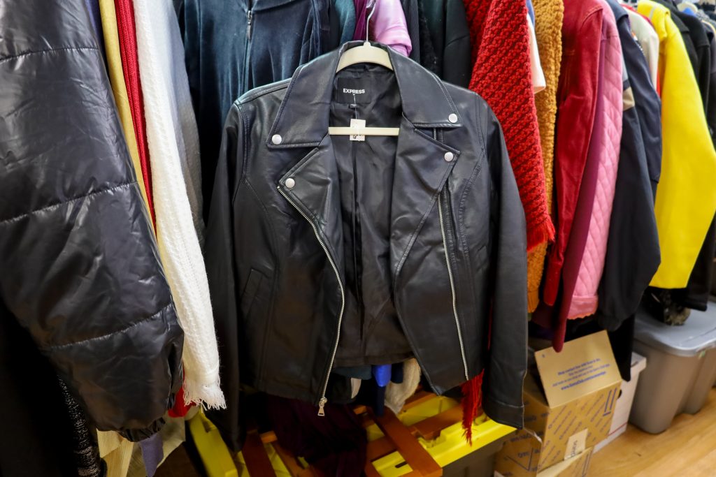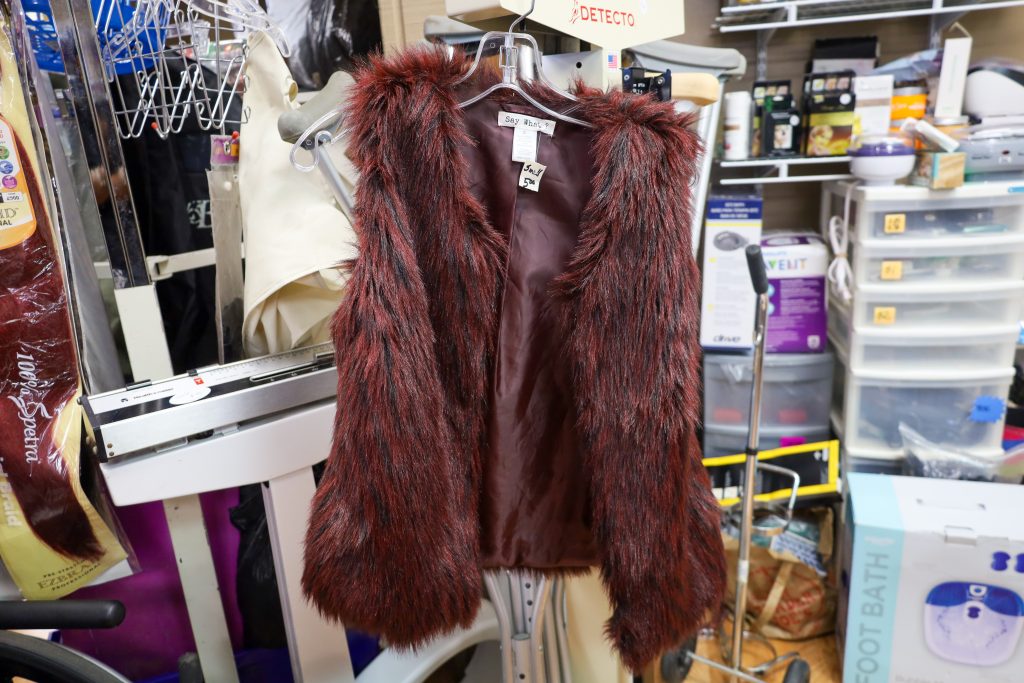 My first discovery was an Express black leather jacket. It was in excellent condition, but unfortunately, a size too small. I returned the next day, hoping it was still there, but it had already been claimed. Next, I found a faux-fur burgundy vest that would have been perfect for fall, but it was also too small. Aways disappointing to find a great piece that doesn’t fit.