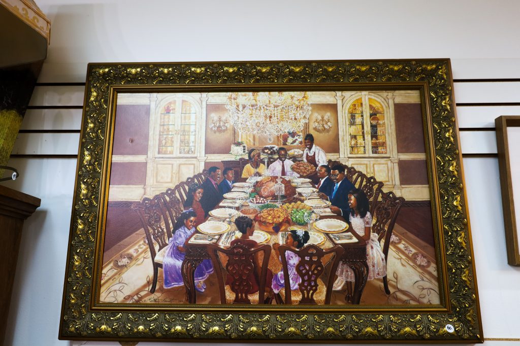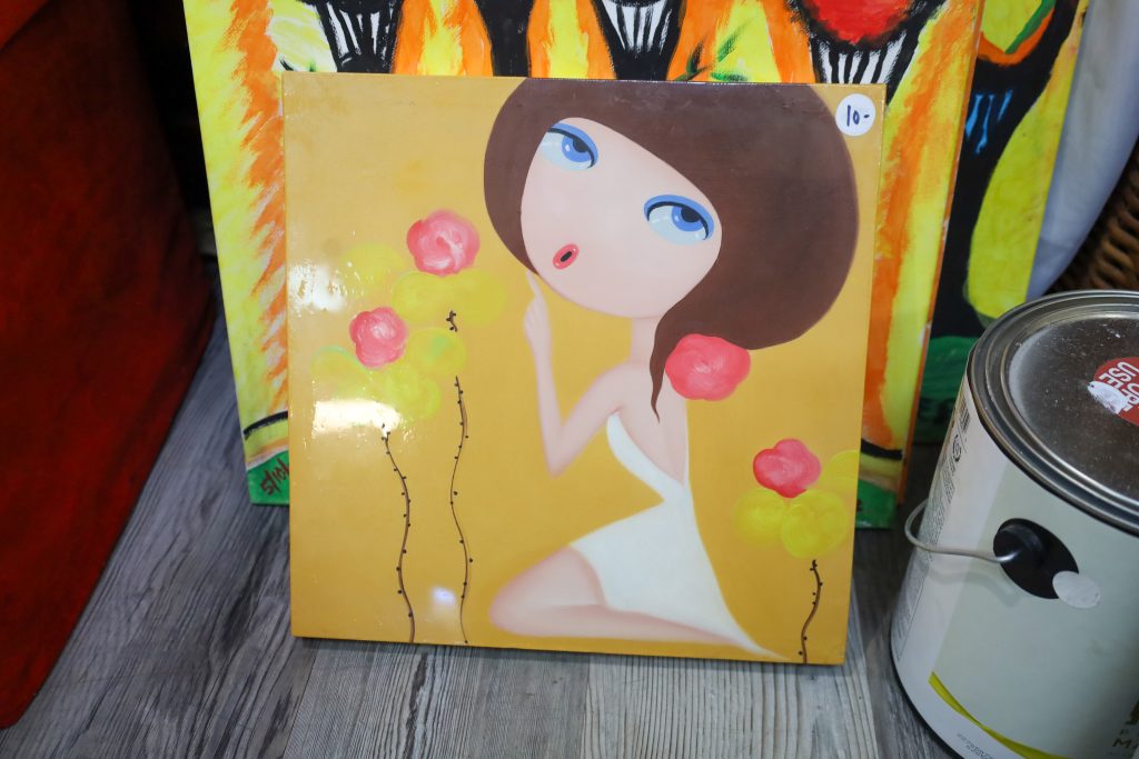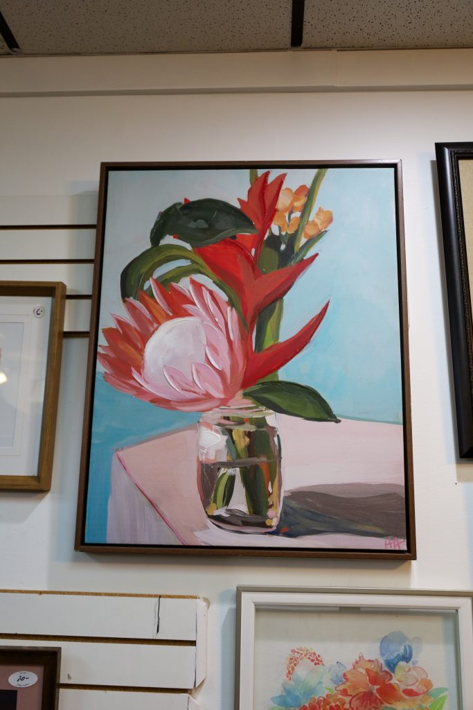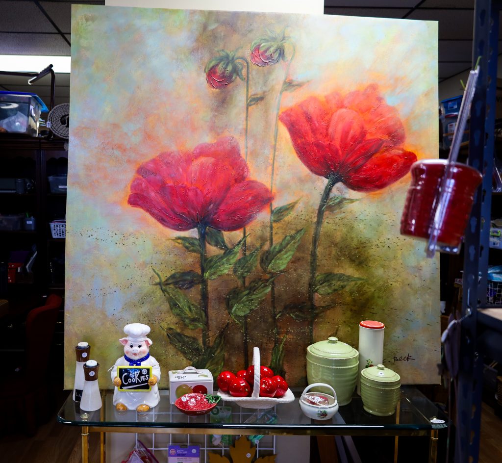 In my own opinion, Fayetteville Thrift Shop’s strong suit is not its clothes, but its home decor items. They have a variety of nice plates and cup sets, paintings, furniture, seasonal decor, and outdoor furniture. I was attracted by the vibrancy of the vase painting with a flower hanging out. The cherry on top was discovering it was also signed by the artist. It made a grand statement of bringing life into my home once I hung it up.