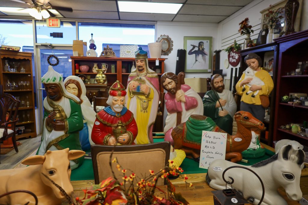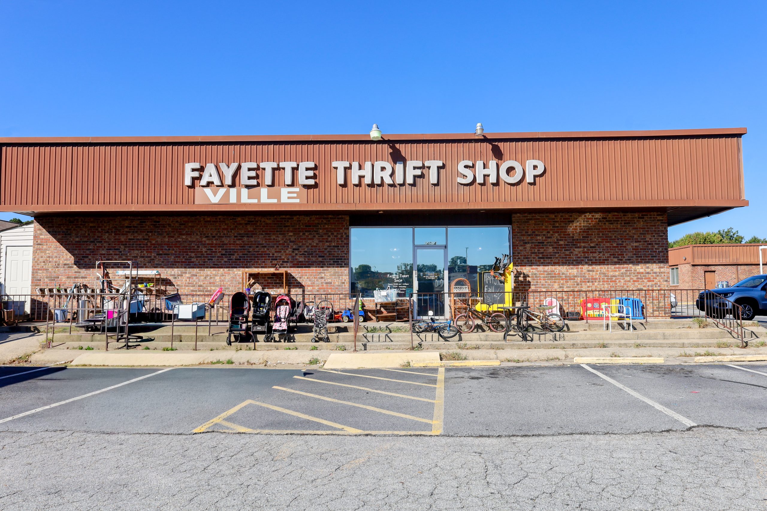 To kick off my thrifting series, I started at a thrift store called Fayette Thrift Shop. This thrift store sits south of the Atlanta metro area and is tucked away on the main street of Fayetteville, GA. Upon entering the thrift store, I noticed a few bicycles, strollers, and other outdoor decorations, which were pretty cool. I spoke with Michael Goins, the new owner of this establishment, whose wife, Karen Goins, is also an owner. He shared that this thrift shop caters to the community by keeping its prices low. This thrift store also sets aside its earnings for the charity of its choice, such as Promise Place, which helps domestic violence victims return to stable living. They also partner with local sheriffs who stop by the shop by providing them with teddy bears for children who are victims of fires.